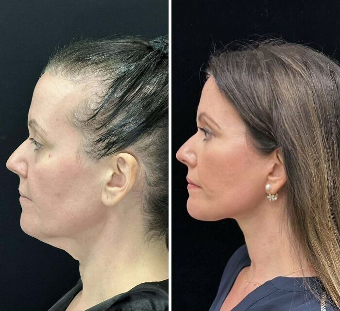 Lifting facial e de pescoço após perda de 82 kg. 2,5 meses após a operação.