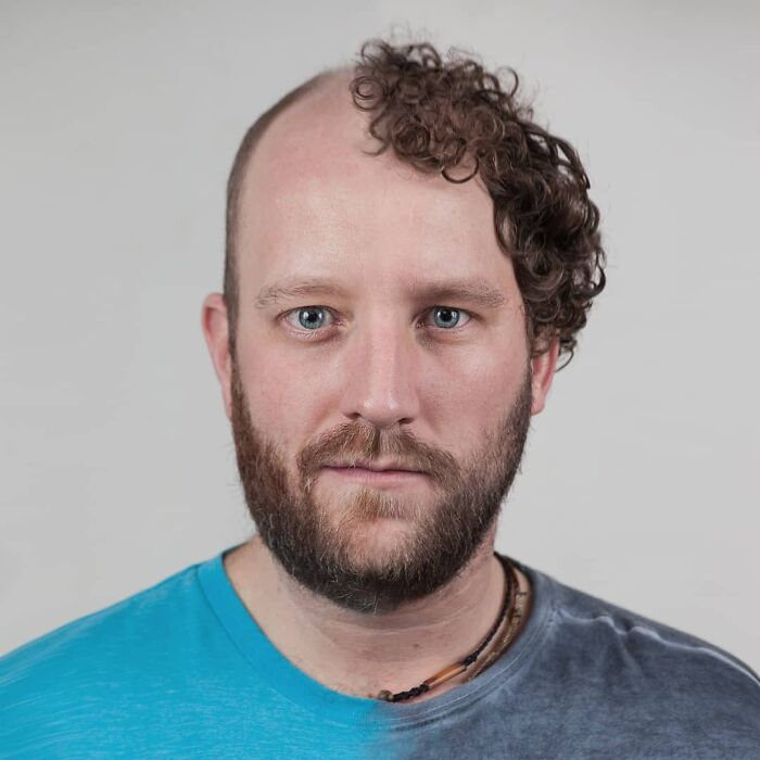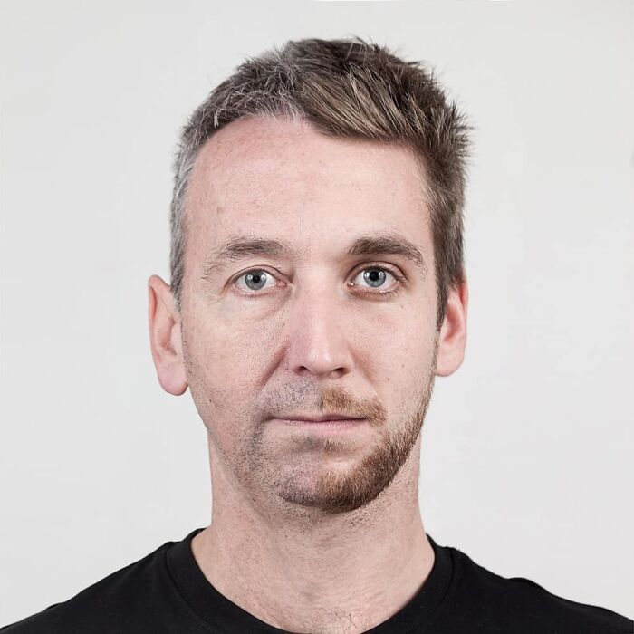 O fotógrafo e designer gráfico canadense Ulric Collette deu início à série “Genetic Portraits” quase que por acaso enquanto experimentava no Photoshop com uma imagem de seu filho junto à sua própria. A fusão das duas faces provocou um resultado inesperadamente poderoso, revelando semelhanças e diferenças de forma impressionante. Desde então, ele aprimorou sua técnica com atenção especial à iluminação e à harmonia visual, criando retratos que parecem retratar uma única pessoa e, ao mesmo tempo, capturam a identidade de dois parentes distintos.