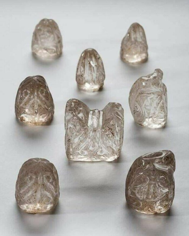 Uma série de peças de xadrez de cristal do século XI do Museu da Catedral em Ourense, Espanha