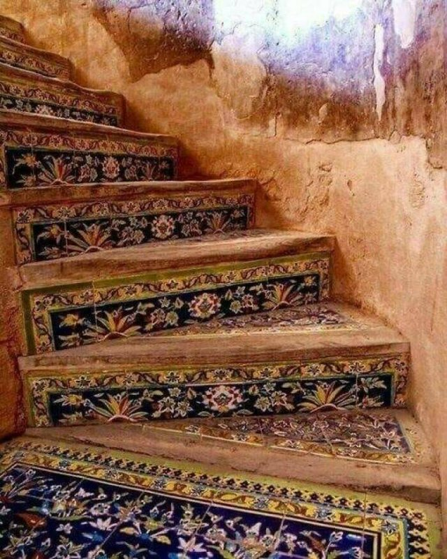 Escadas de azulejos no Palácio Ali-Qapu em Isfahan – Irã, construídas pelo Rei Safvaid Xá Abbas I no final do século XVI (1597)