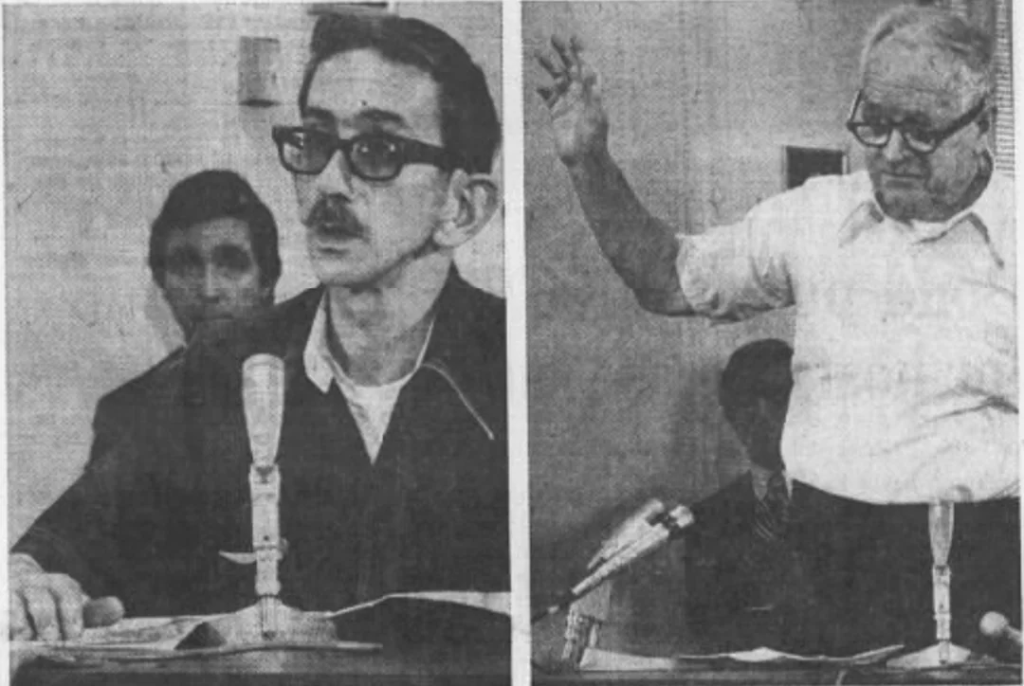 Os pedófilos condenados Gerald Richards (esquerda) e Guy Strait (direita) testemunham perante o Senado dos EUA enquanto os legisladores consideram uma proibição federal de material de abuso sexual infantil, então ilegal em apenas seis estados. Strait insistiria a um senador que suas ações foram “benéficas”, 1977