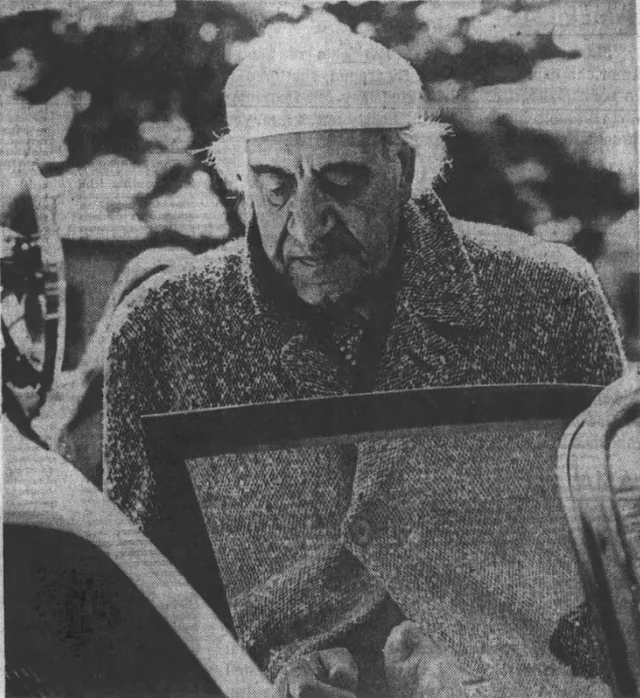 Paul Arzens com o protótipo L’Oeuf Électrique (O Carro Ovo Elétrico) – Paris, 1942