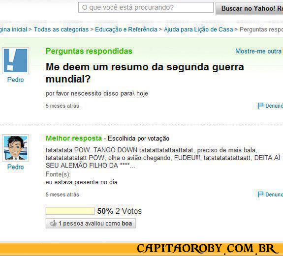 Já vi isso no yahoo respostas, agora ter coragem pra fazer isso na prova, merece 10 😉