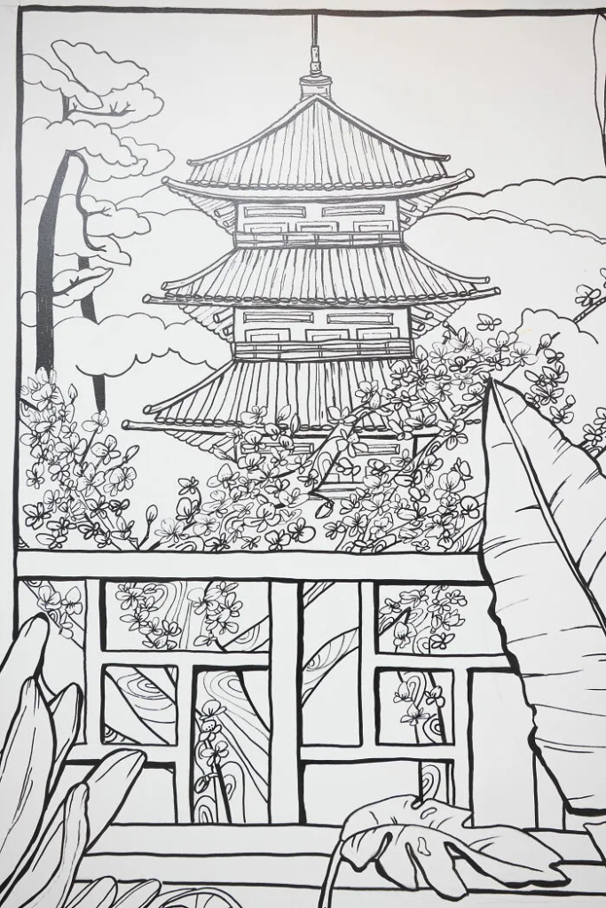 Executado com técnica meticulosa, o projeto incorporou camadas de tinta branca de base sobre as quais as linhas pretas foram aplicadas com marcadores acrílicos e tintas de alta qualidade, garantindo contraste nítido tanto sob luz natural quanto sob iluminação ambiente. Segundo Yoo, aceitou pequenas imperfeições nas linhas como forma de dar calor humano ao espaço — o que evita que o ambiente pareça frio ou meramente gráfico. Além disso, o restaurante oferece um menu omakase de 16 pratos (há também opção com 10) para combinar arte e comida em uma única experiência.