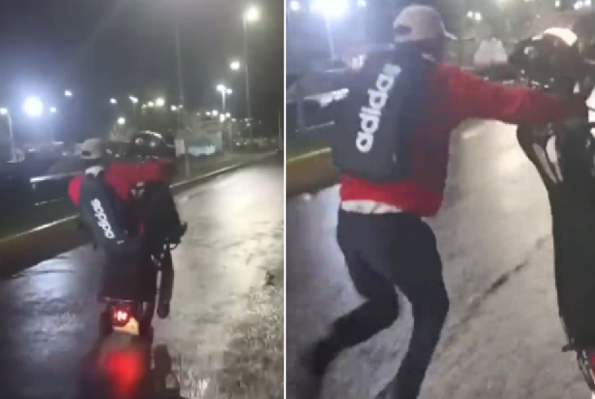 Sabe aquele momento que o motociclista tenta impressionar os amigos a bordo da moto e percebe tudo dá errado?