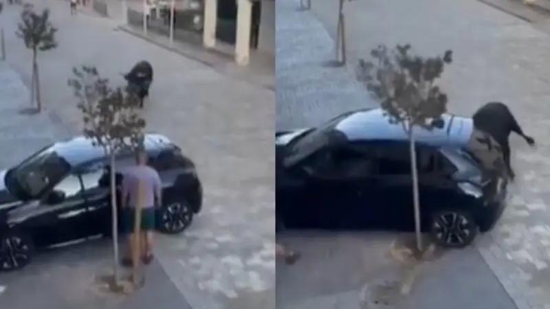 Durante as festas de Tendilla, em Guadalajara, um carro estacionado em uma rua foi alvo inesperado dos touros que participavam do evento. O veículo de um motorista que não reside…