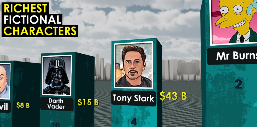 No mundo da ficção, alguns personagens são retratados com fortunas inimagináveis, muito superiores às dos bilionários do mundo real.