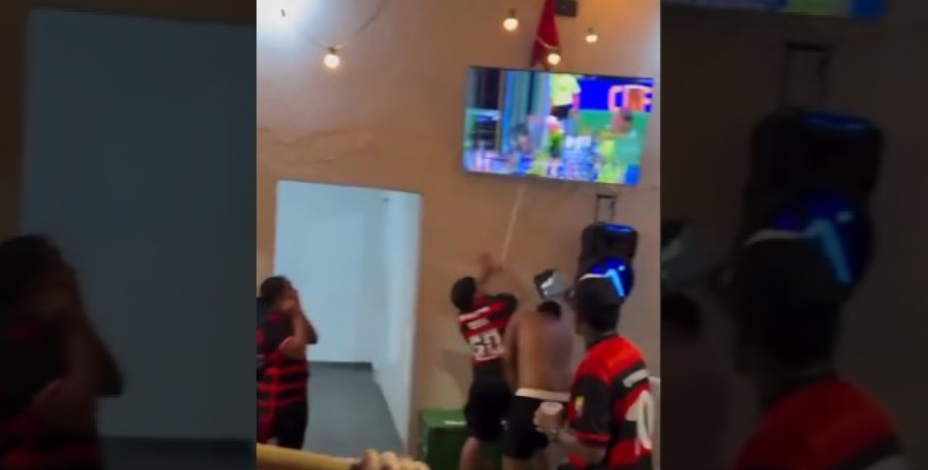 Nele é possível ver o homem destruir a TV após a última cobrança da disputa de pênaltis para indignação dos demais torcedores.